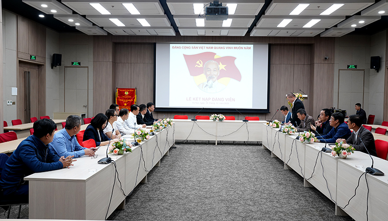 Dưới cờ Tổ quốc, cờ Đảng và chân dung Chủ tịch Hồ Chí Minh vĩ đại, các đồng chí Đảng viên mới đã tuyên thệ tuyệt đối trung thành với mục tiêu lý tưởng của Đảng, chấp hành nghiêm chỉnh Cương lĩnh chính trị, Điều lệ Đảng và hứa sẽ tiếp tục nỗ lực hoàn thành xuất sắc mọi nhiệm vụ chuyên môn tại CONINCO.