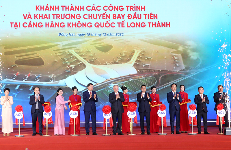 Sáng ngày 19/12/2025, trong không khí toàn Đảng, toàn quân và toàn dân thi đua lập thành tích chào mừng Đại hội đại biểu toàn quốc lần thứ XIV của Đảng, một sự kiện chính trị - kinh tế có quy mô đặc biệt lớn đã diễn ra đồng loạt trên cả nước. Từ điểm cầu trung tâm tại Hà Nội, Chính phủ đã phát lệnh khởi công và khánh thành chuỗi 234 công trình hạ tầng trọng điểm với tổng mức đầu tư hơn 3,4 triệu tỷ đồng. Tại điểm cầu Cảng HKQT Long Thành, tỉnh Đồng Nai, diễn ra Lễ khánh thành các công trình giai đoạn 1 và chính thức khai trương chuyến bay đầu tiên, đánh dấu bước chuyển mình mạnh mẽ của hạ tầng hàng không Việt Nam trong kỷ nguyên mới.