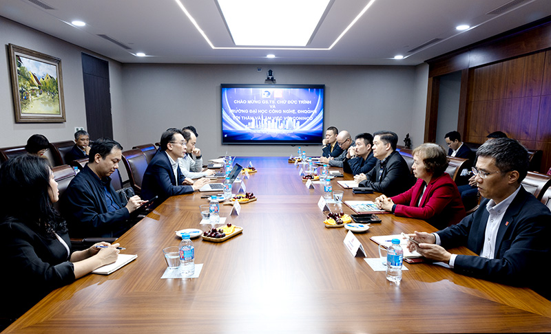 Tham dự buổi làm việc, về phía trường Đại học Công nghệ có GS. TS. Chử Đức Trình – Hiệu trưởng; PGS. TS. Nguyễn Việt Hà – Nguyên Hiệu trưởng; PGS. TS. Nguyễn Hoài Sơn – Trưởng phòng Khoa học công nghệ và Hợp tác phát triển; ThS. Đỗ Hoàng Kiên – Giám đốc trung tâm Đại học số; ThS. Lê Thị Phương Thoa - Phó Trưởng phòng đào tạo, cùng các cán bộ kỹ thuật.