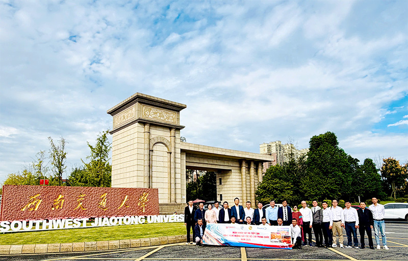 Trong chuyến công tác, đoàn đã có buổi làm việc chính thức với Đại học Giao thông Tây Nam (SWJTU) – một trong những cơ sở đào tạo và nghiên cứu uy tín bậc nhất thế giới về công nghệ giao thông đường sắt. Đón tiếp đoàn, về phía SWJTU có bà Xin Ling - Phó Trưởng phòng Hợp tác và Giao lưu quốc tế, Phó Viện trưởng Viện đường sắt Thiên Hữu; bà Li Yixuan - Trưởng văn phòng Viện đường sắt Thiên Hữu; ông Qing Song - Phòng Dịch vụ quản lý nước ngoài; ông He Jiaguo - Cán bộ Văn phòng Viện Đường sắt Thiên Hữu.