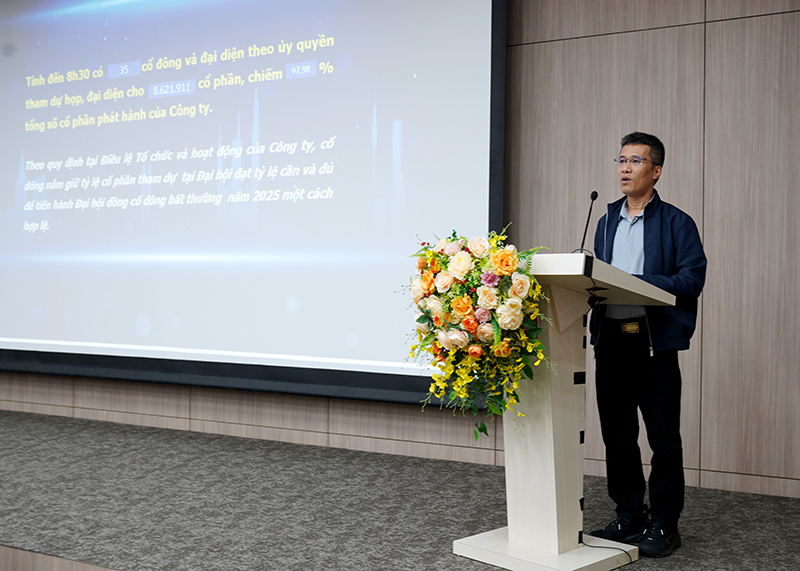 Đại hội đồng cổ đông bất thường năm 2025 được tổ chức nhằm bầu bổ sung thành viên HĐQT nhiệm kỳ 2022 – 2027 để đảm bảo số lượng thành viên HĐQT là 05 người theo đúng quy định tại Điều lệ Tổ chức và hoạt động của Công ty sau sự ra đi đáng tiếc của cố Chủ tịch HĐQT Nguyễn Văn Công vào tháng 6/2025; đồng thời thông qua các tờ trình về việc sửa đổi bổ sung hoàn thiện hệ thống văn bản quản trị nội bộ Công ty.