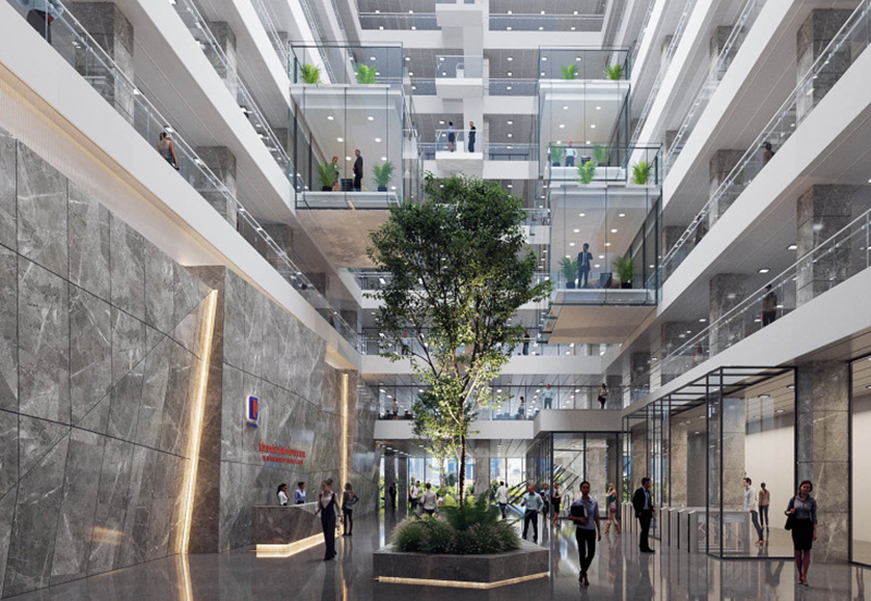 Được chắp bút bởi liên danh tư vấn quốc tế CONINCO và NIHON SEKKEI (Nhật Bản), công trình không chỉ giải quyết bài toán công năng của một trụ sở làm việc hiện đại mà còn là một tác phẩm điêu khắc trong không gian đô thị. Công trình nổi bật với giải pháp tạo hình “khối cắt góc” đầy táo bạo – một sự xử lý không gian tinh tế vừa tuân thủ tuyệt đối chỉ giới hành lang đường sắt, vừa biến khối nhà thành điểm nhấn thị giác sắc sảo nơi ngã tư đường. Khoác lên mình lớp vỏ bao che là hệ khung nhôm kính lớn, tòa nhà hiện diện như một khối điêu khắc trong suốt, kết hợp hài hòa giữa không gian làm việc tiện nghi với những khoảng xanh thư giãn trên mái, kiến tạo nên một biểu tượng kiến trúc văn minh và hiện đại tại cửa ngõ thủ đô.