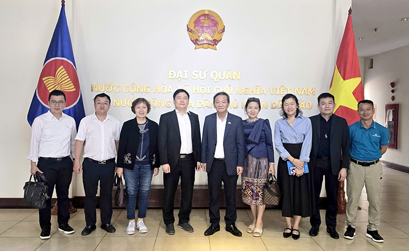 Tiếp nối thành công của cuộc gặp cấp cao, chiều 18/3, đoàn công tác đã tới thăm Đại sứ quán Việt Nam tại Lào và làm việc với Đại sứ Nguyễn Minh Tâm.