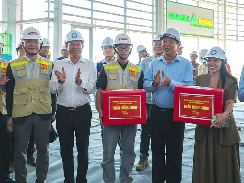 Nhân dịp này, các lực lượng đang làm việc tại công trường nói chung và tập thể cán bộ, kỹ sư CONINCO đã vinh dự nhận những phần quà động viên ý nghĩa từ Bộ trưởng. Đây là sự quan tâm sâu sát của lãnh đạo ngành Xây dựng, nguồn khích lệ to lớn giúp đội ngũ tư vấn CONINCO thêm quyết tâm, nỗ lực vượt qua khó khăn để hoàn thành tốt nhiệm vụ tại công trình trọng điểm quốc gia này.