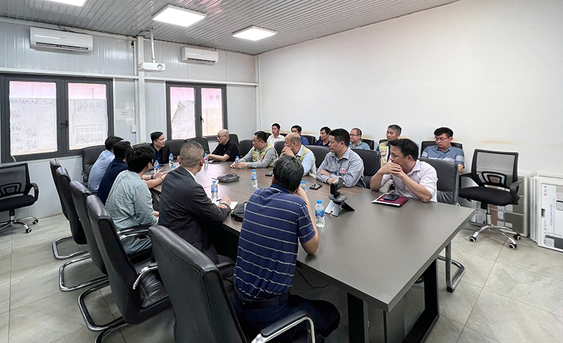 Làm việc củng văn phòng hiện trường, Chủ tịch HĐQT đã lắng nghe báo cáo về những thách thức kỹ thuật và tiến độ triển khai thực tế. Trong bối cảnh khối lượng công việc khổng lồ và áp lực thời gian lớn, Chủ tịch HĐQT ghi nhận sự nỗ lực, tinh thần trách nhiệm cao của tập thể cán bộ CONINCO tại dự án, đồng thời có những chỉ đạo sát sao nhằm đảm bảo sự phối hợp nhịp nhàng giữa các bộ phận, duy trì chất lượng tư vấn, tuyệt đối tuân thủ các quy trình kiểm soát chất lượng, đảm bảo an toàn lao động ở mức cao nhất.